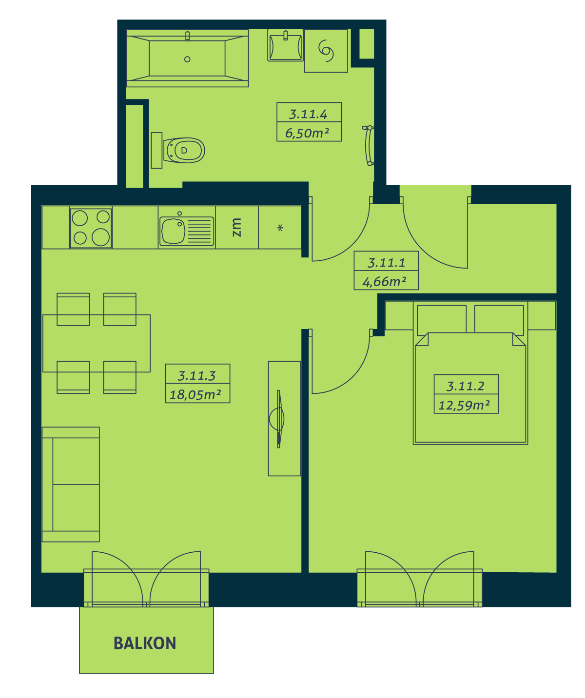 MIESZKANIE A.3.11 Powierzchnia: 41,80 m23 PIĘTRO, 2 POKOJE NR MIESZKANIE NR A.3.11 [m²] 3.11.1 PRZEDPOKÓJ 4,66 3.11.2 SYPIALNIA 12,59 3.11.3 POKÓJ DZIENNY Z ANEKSEM KUCHENNYM 18,05 3.11.4 ŁAZIENKA 6,50 SUMA 41,80 BALKON 2,00 Pobierz kartę mieszkania pdf Powrót do planu 3 piętra Skontaktuj się z naszym doradcą: Napisz do nas